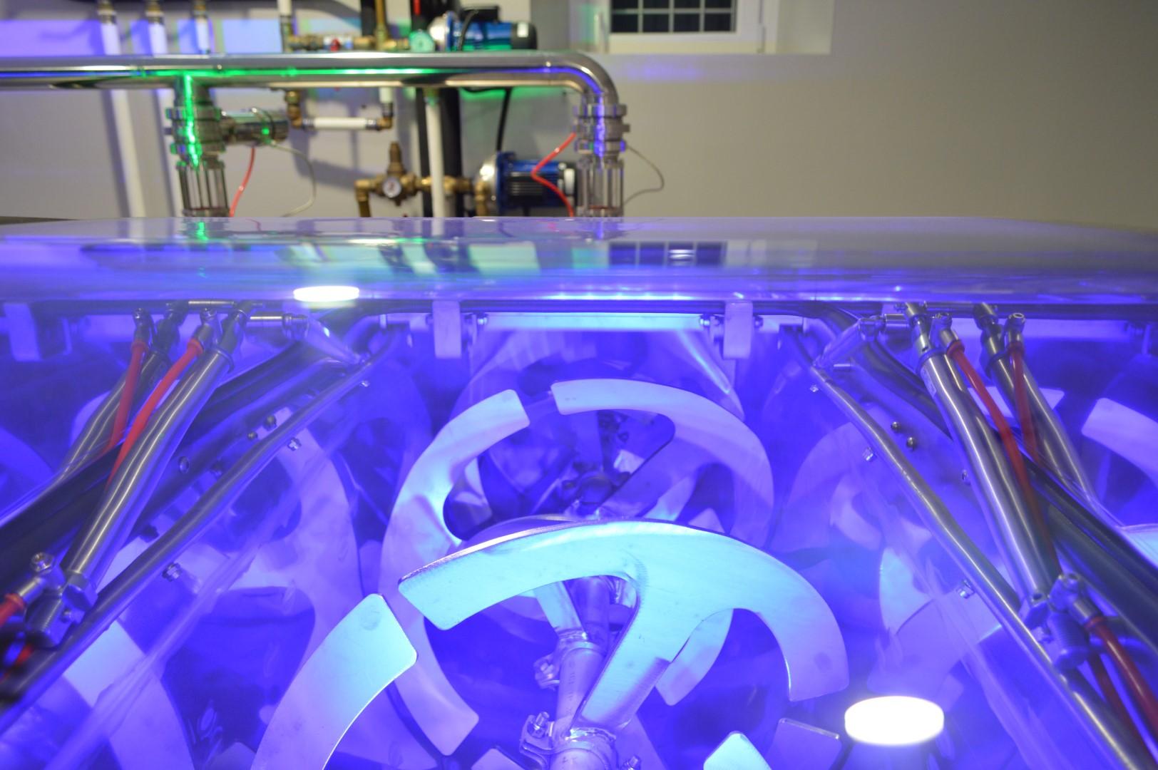 Dopo la frangitura, le olive passano in un tubo d’acciaio dove le vibrazioni ultrasoniche, mediante il fenomeno fisico della cavitazione,